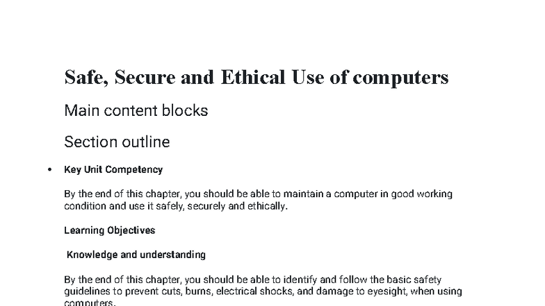 Section: UNIT 4 Safe, Secure and Ethical Use of computers | ICT | REB