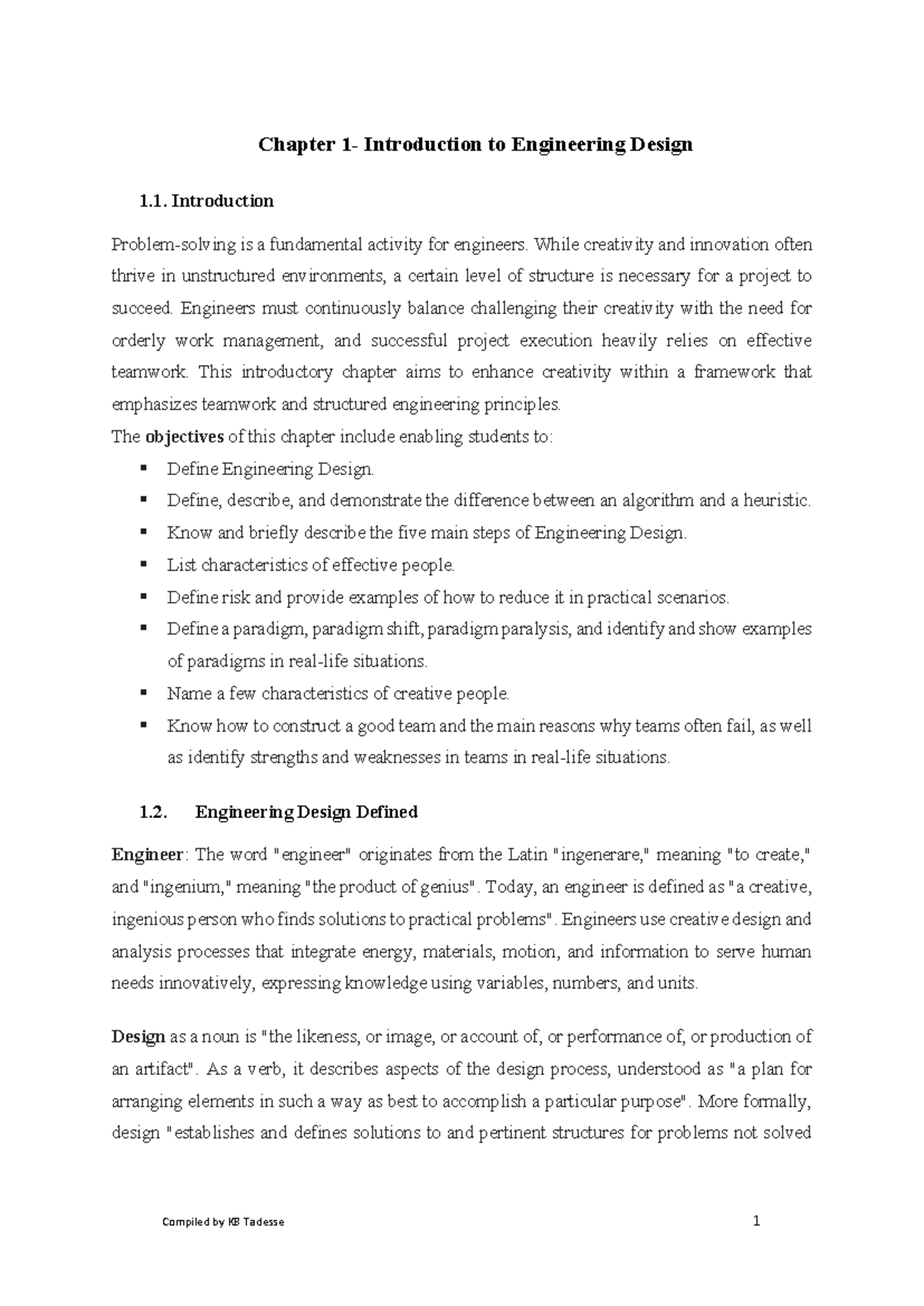 Comprehensive Summary of Chapter 1 Introduction To Engineering Design ...