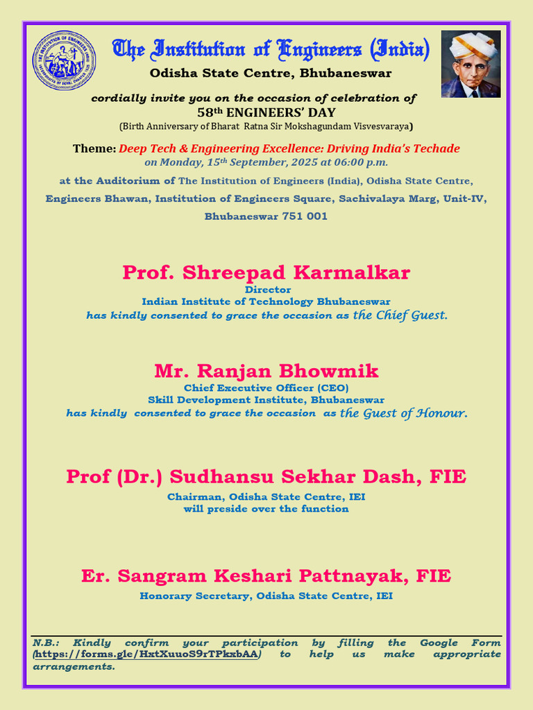 Invitation Card of 58th Engineers Day, 15th Sept. 2025 | PDF