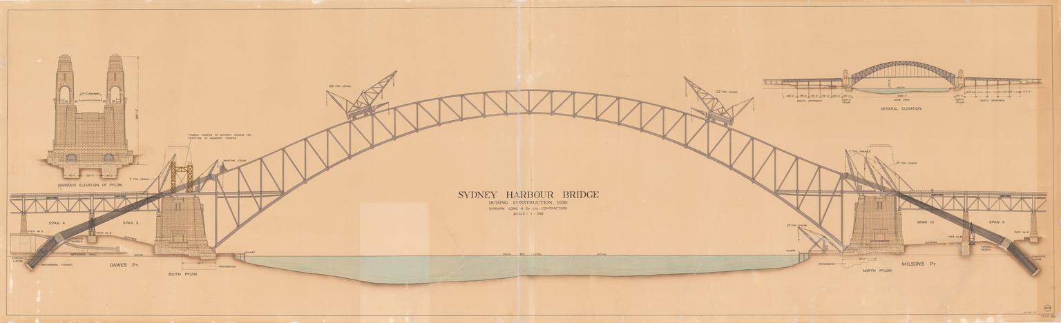Engineering drawing: Sydney Harbour Bridge during construction ...