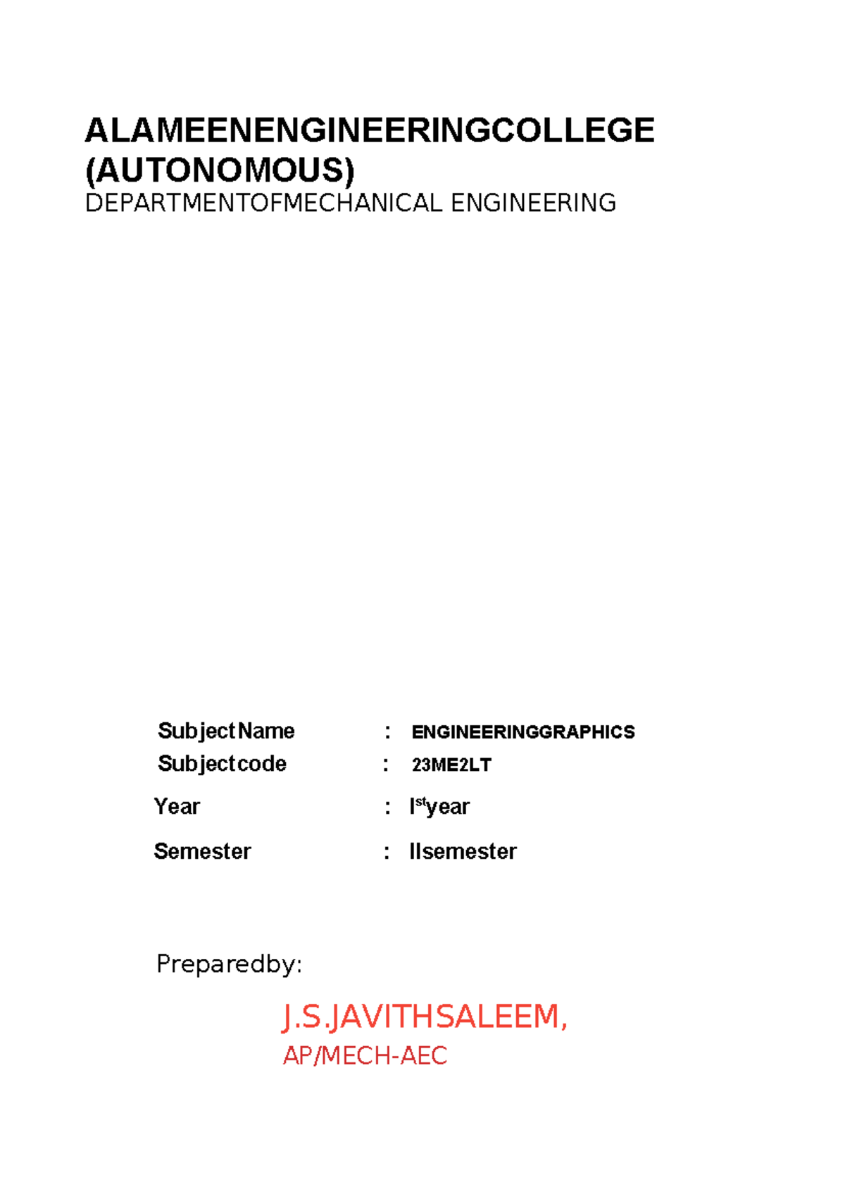 Engineering Graphics - GE3251 - Notes PDF Download