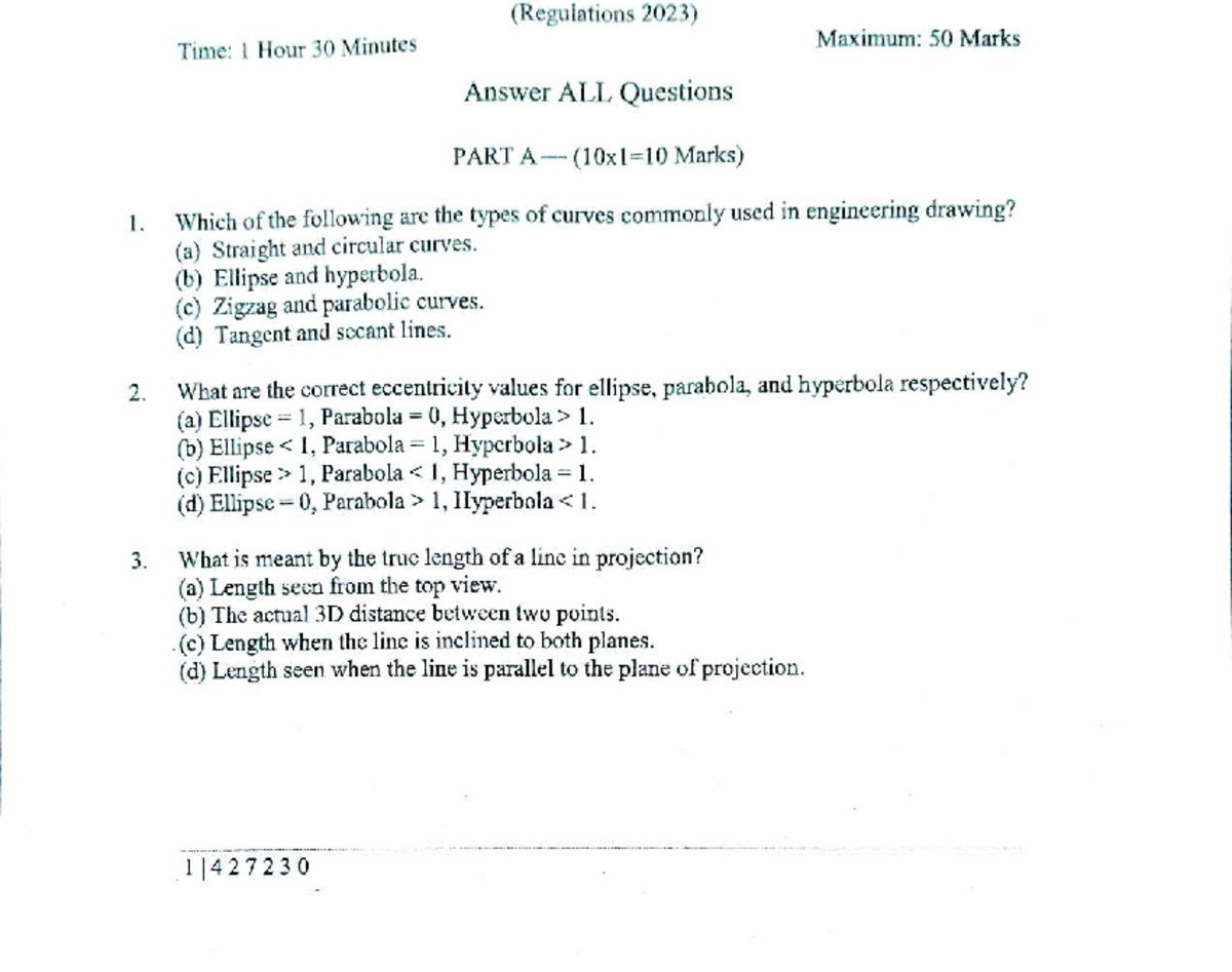 Engineering Graphics Question Paper 2024 | PDF | Elementary Geometry ...