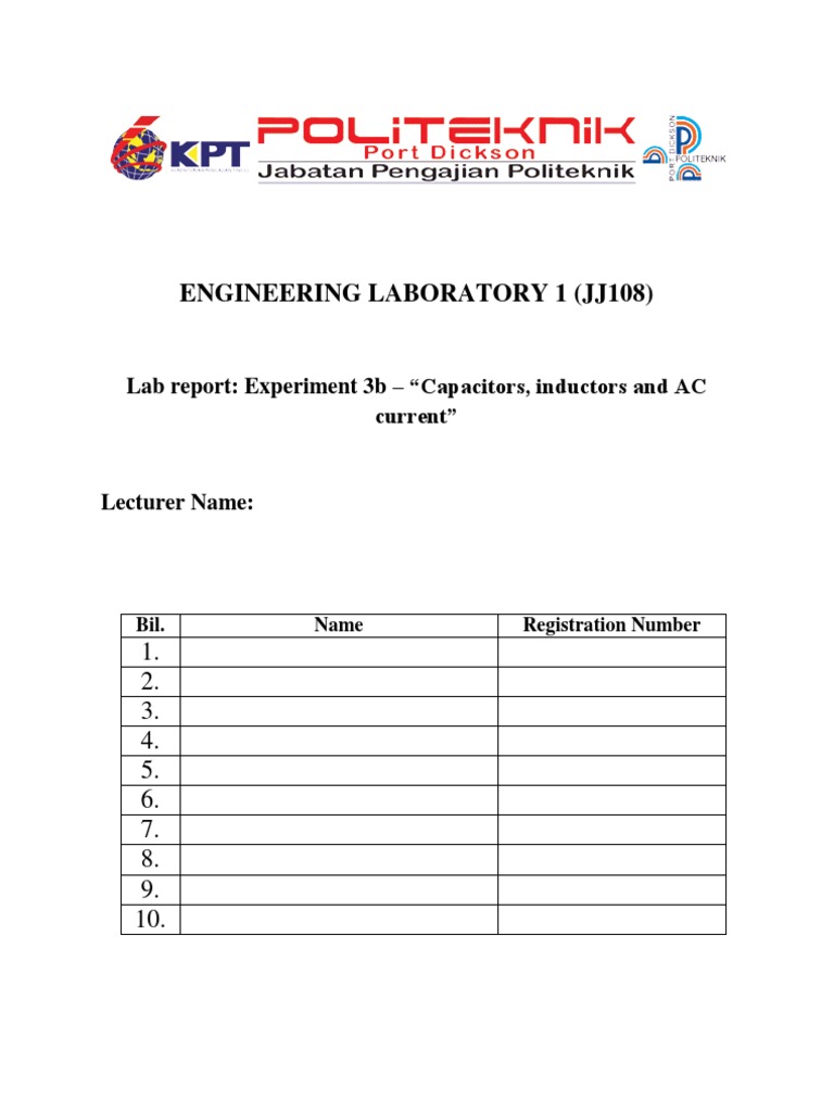 Engineering Laboratory 1 (Jj108) : Lab Report: Experiment 3b ...