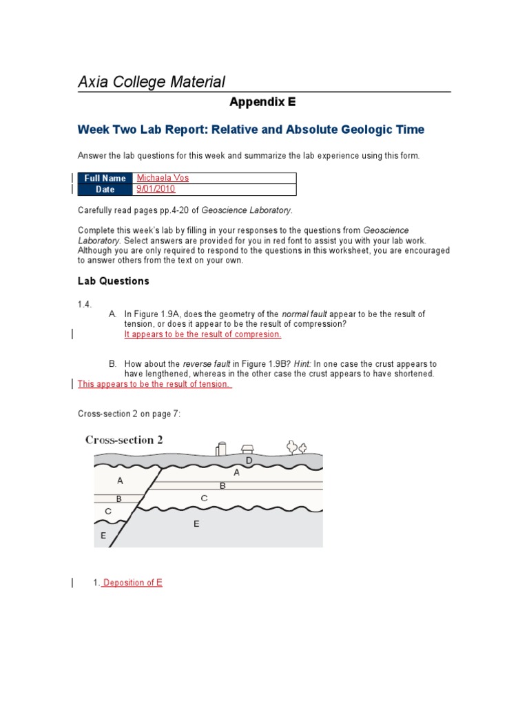 Lab 1 sample lab report - lab - APPENDIX 2 SAMPLE LAB REPORT name ...