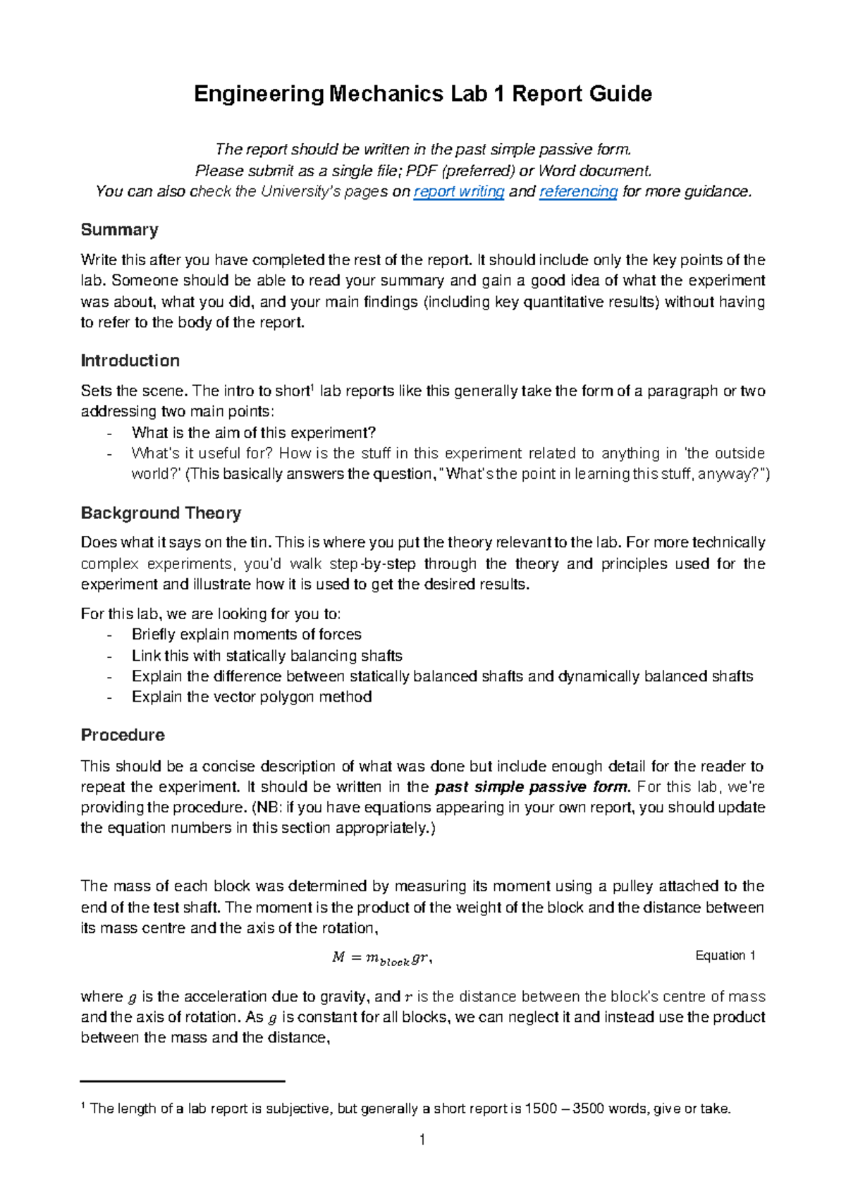 ENGM 101 Lab 1 Report Guide: Writing a Comprehensive Lab Report - Studocu