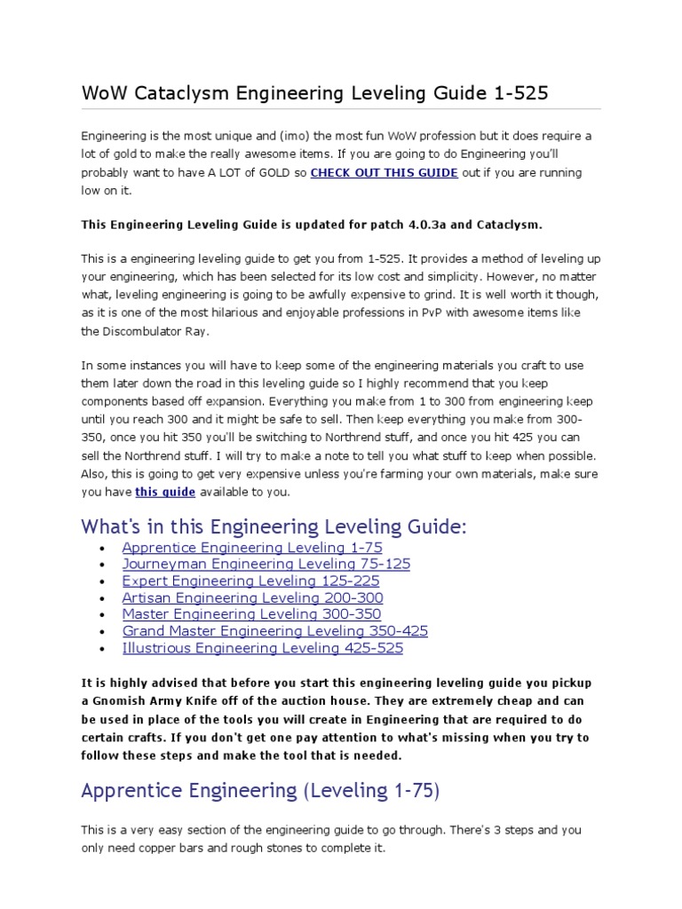Engineering Leveling Guide Wotlk at Skye Kinsella blog