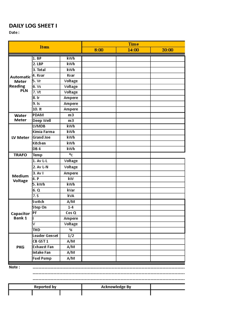 Daily Log Sheet Engineering | PDF | Electric Power | Mechanical Engineering