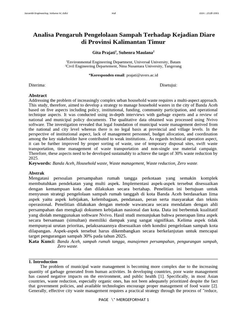 Template for Serambi Engineering Manuscript (1) | PDF | Waste ...