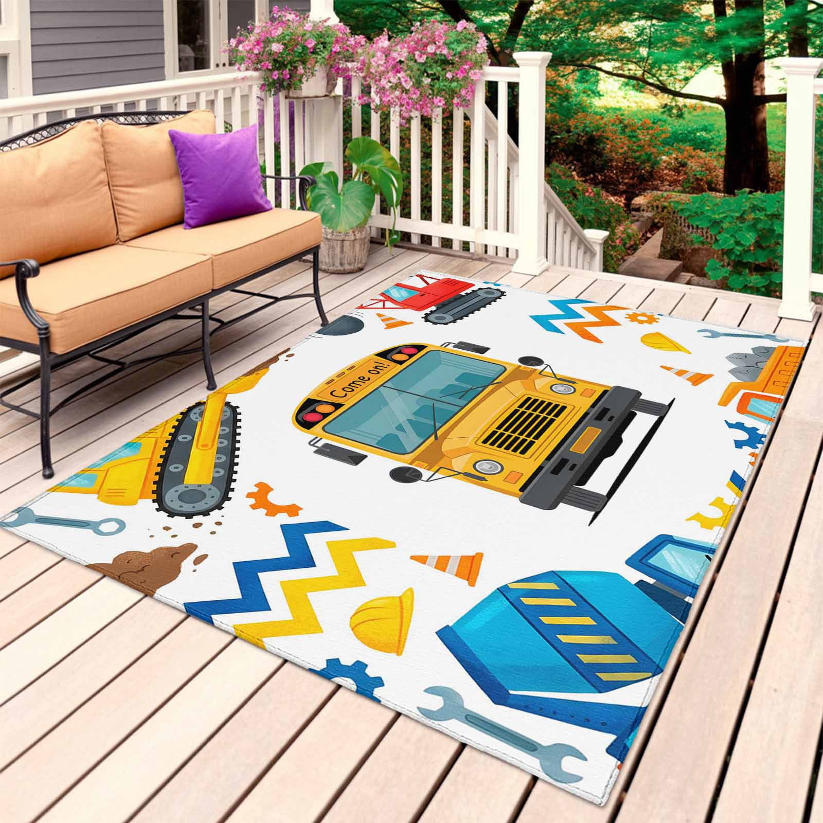 Blue Yellow Cartoon Truck Outdoor Rug 5x8 Ft, Non Slip Washable Area ...