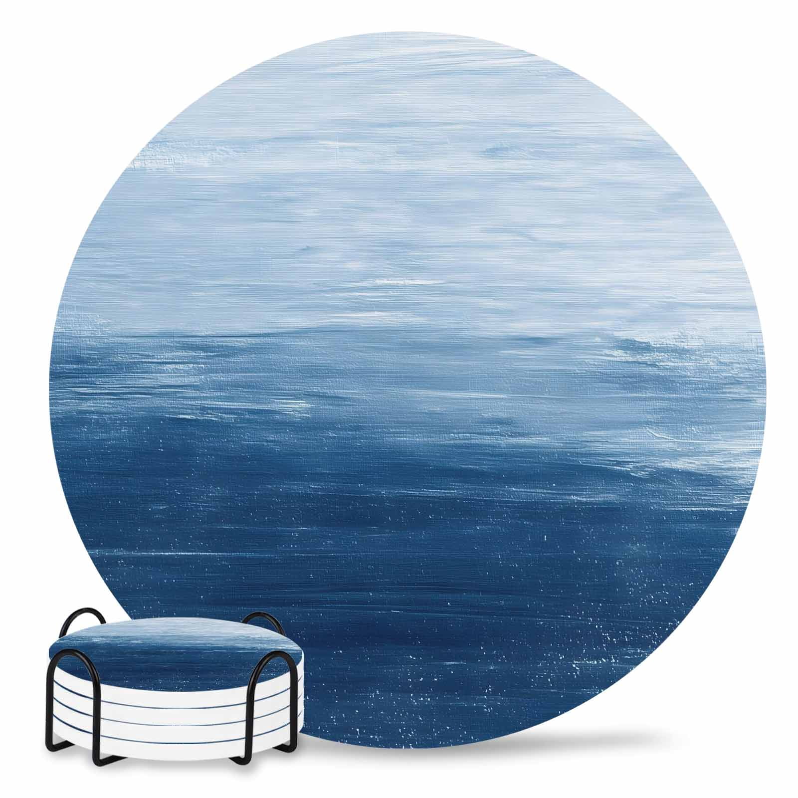 Coasters Set of 4 Blue Beach Ocean Drink Coasters with Holder Absorbent ...