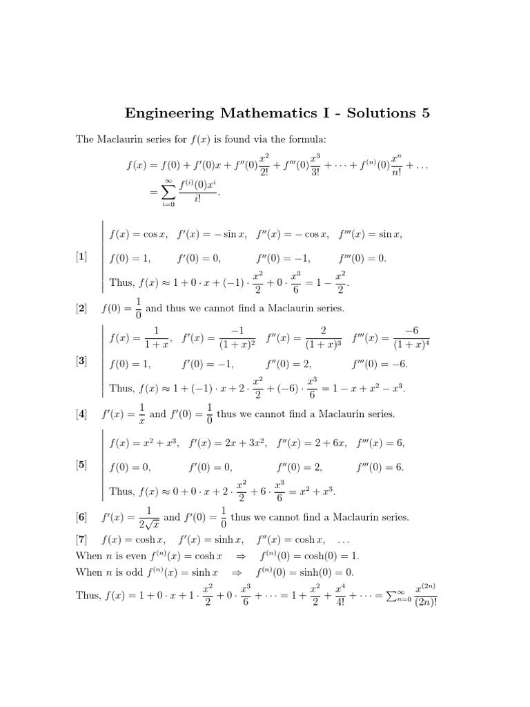 Engineering Mathematics I - Solutions 5 | PDF | Mathematical Relations ...