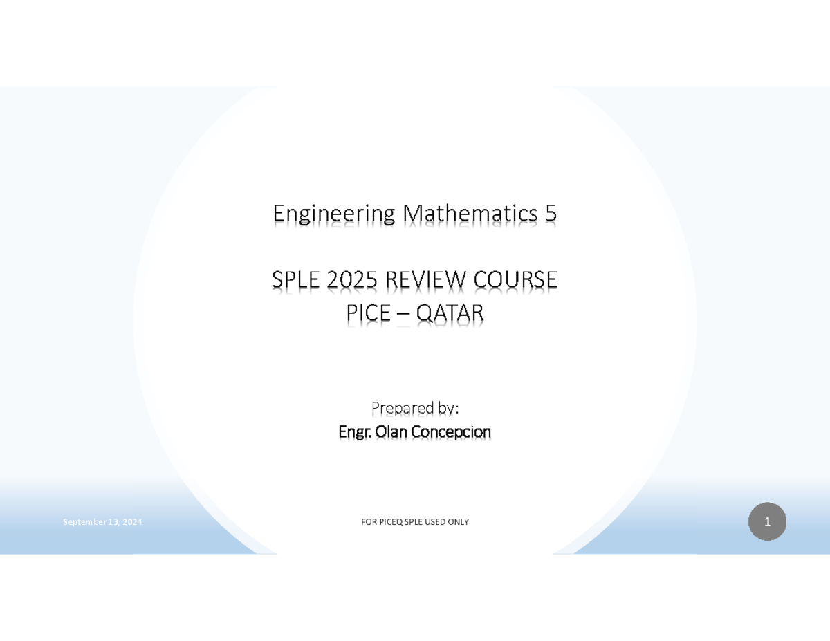 SPLE 2025 Engineering Mathematics 5 Review Course Notes - Studocu