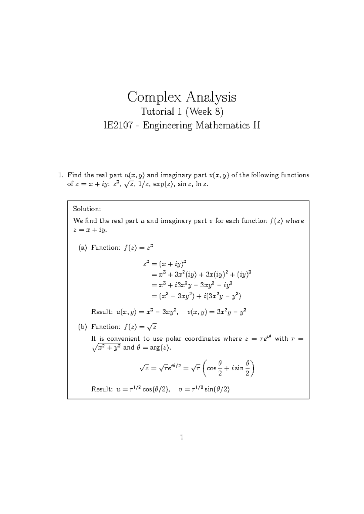 IE2107 Engineering Mathematics II: Complex Analysis Week 8 Solutions ...