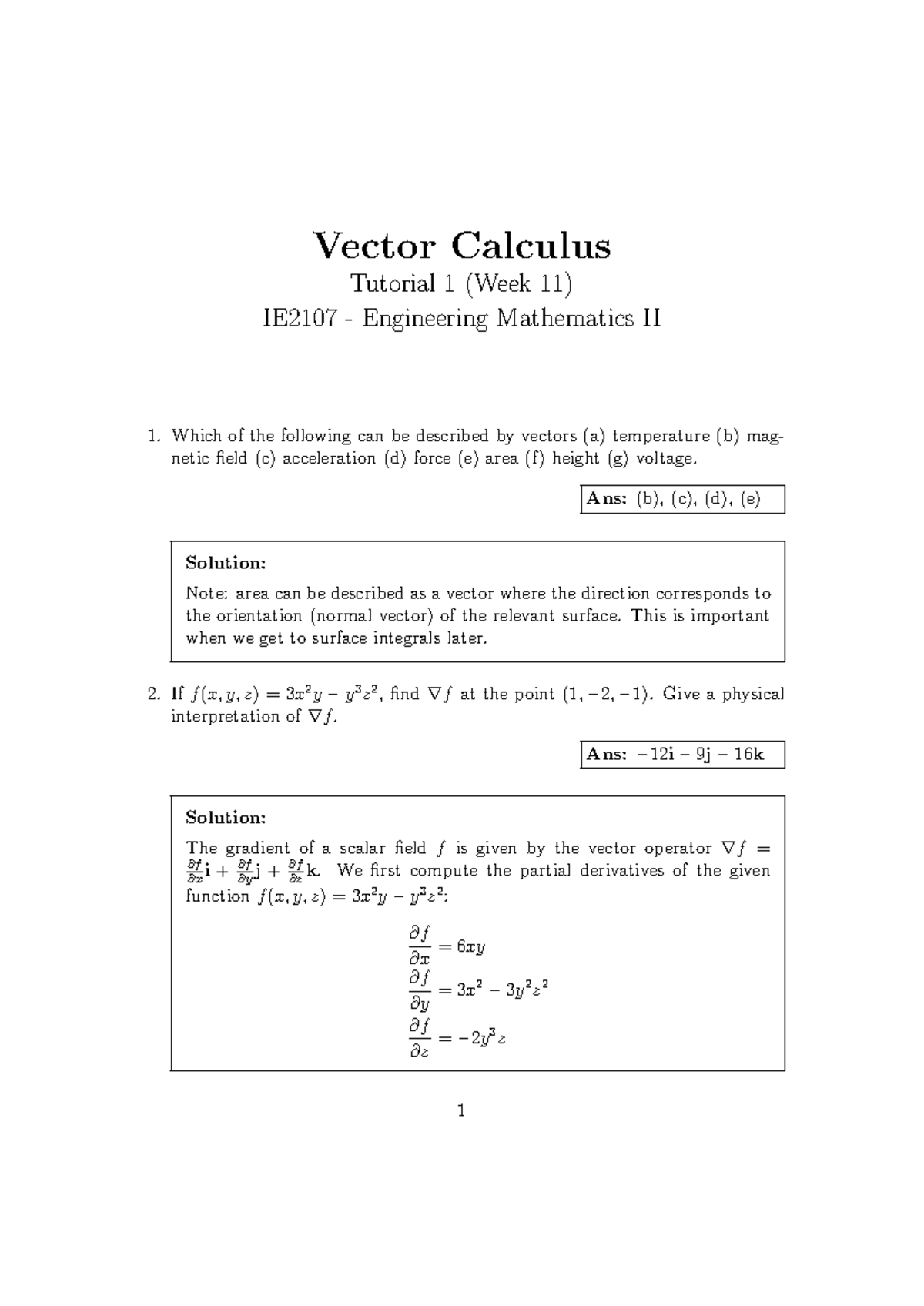 IE2107 Engineering Mathematics II: Vector Calculus Week 11 Solutions ...