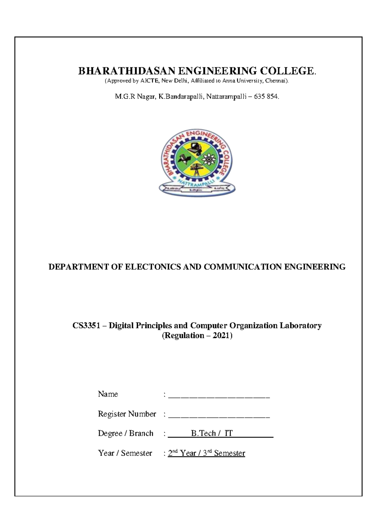 CS3351 Digital Principles and Computer Organization Lab Record - Studocu