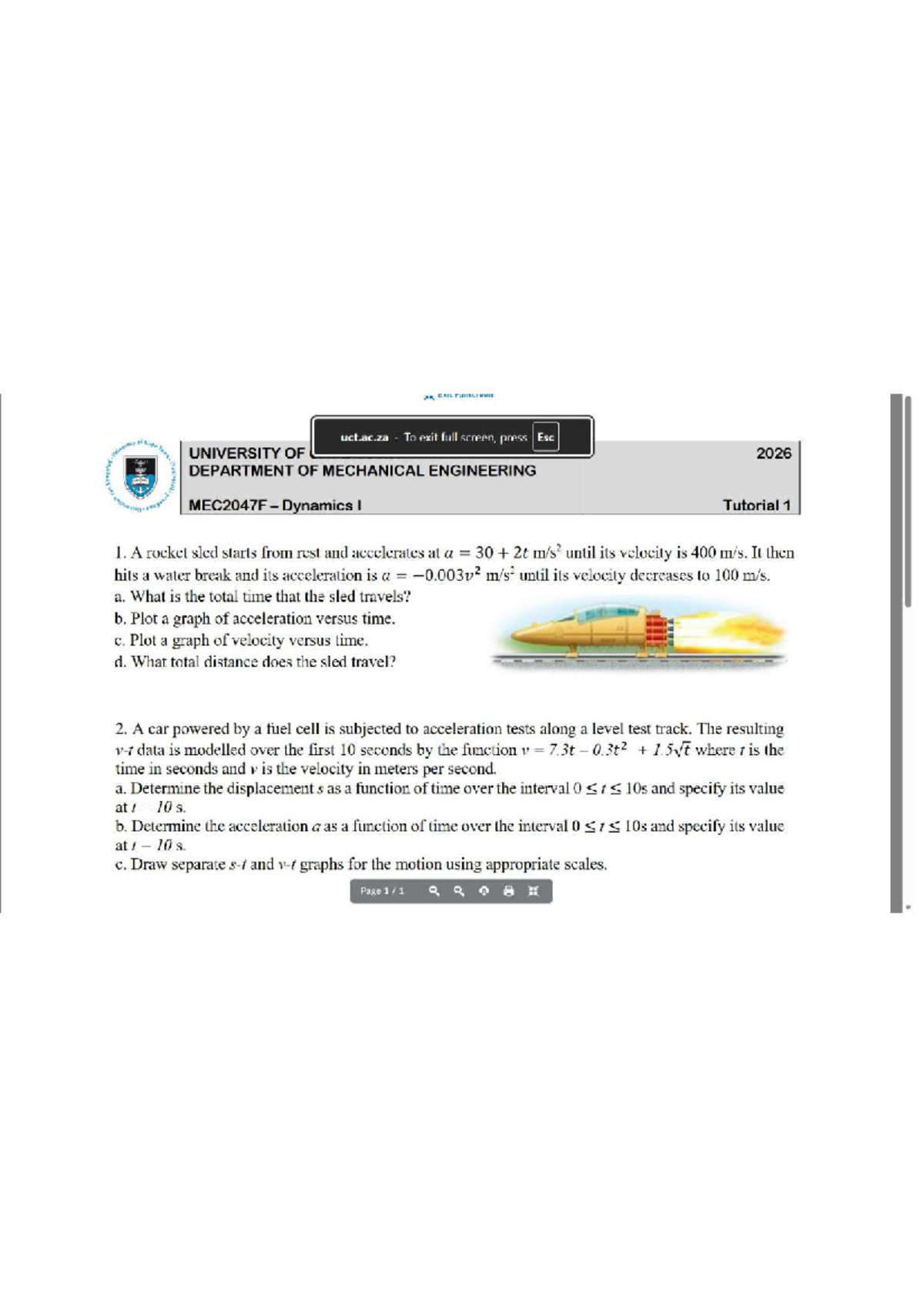 MEC2047F Dynamics Tutorial 1 - Practice Problems and Solutions - Studocu