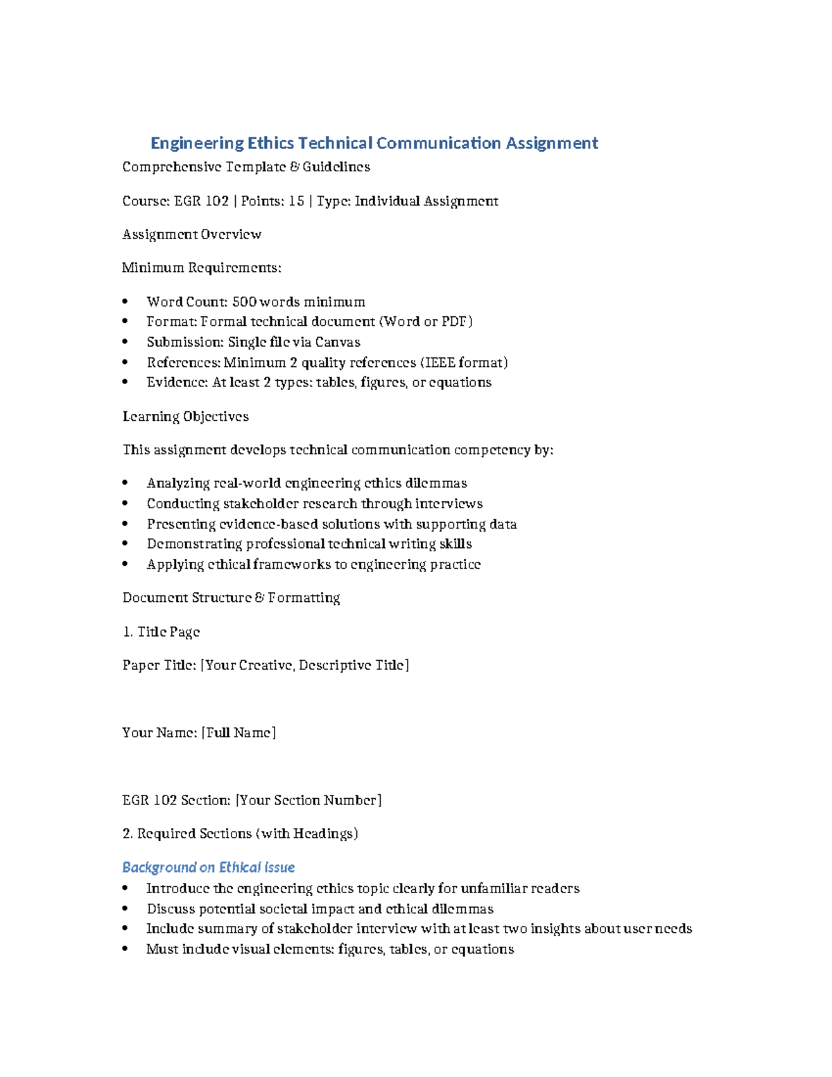 EGR 102 Engineering Ethics Assignment Template Guidelines - Studocu