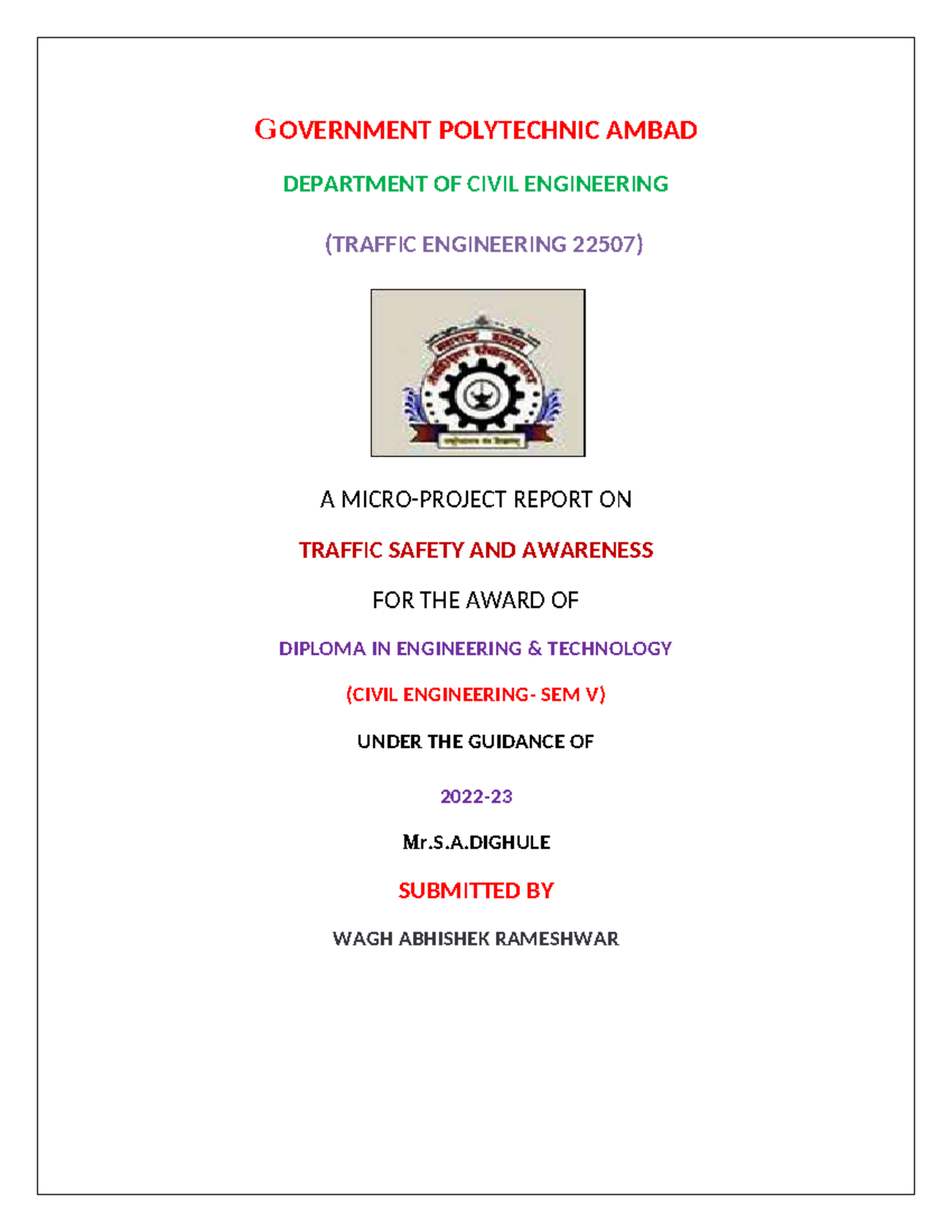 Traffic Safety and Awareness Report (Traffic Engineering 22507) - Studocu