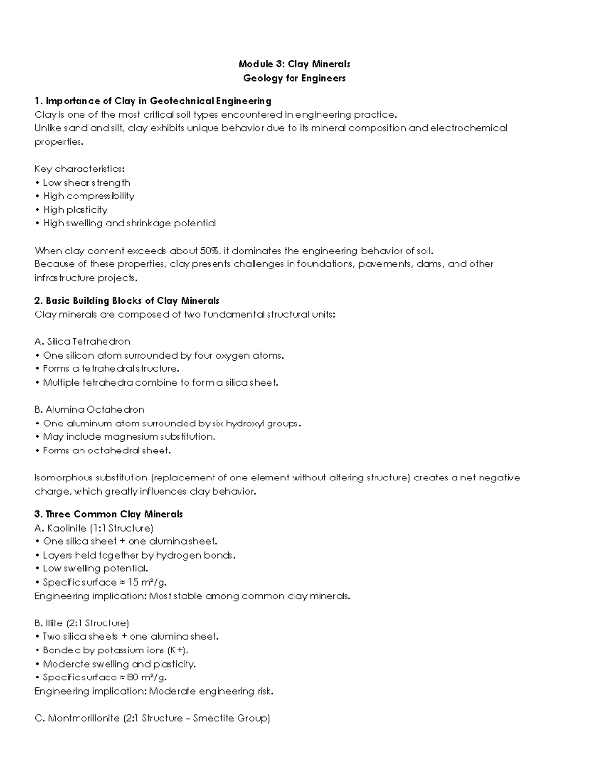 Module 3: Clay Minerals in Geotechnical Engineering Summary - Studocu