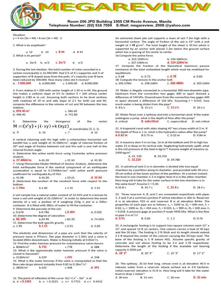 SOLUTION: CIVIL ENGINEERING PRACTICE PROBLEMS WITH SOLUTION - Studypool