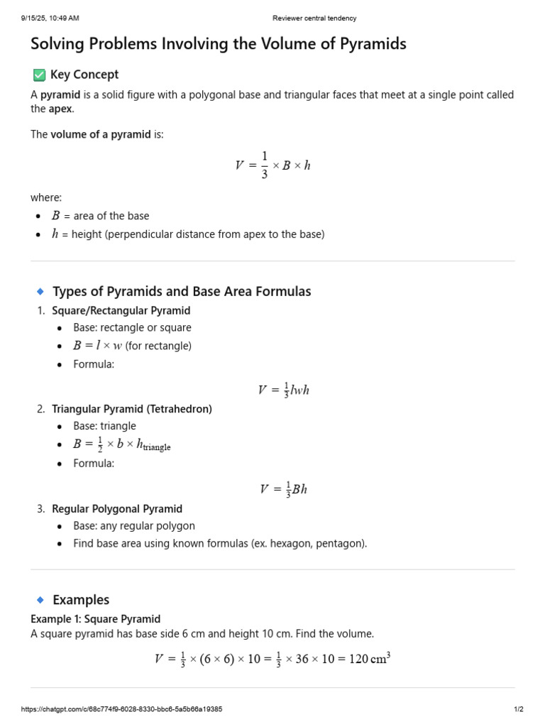 Solving Problems Involving The Volume of Pyramids | PDF | Triangle | Area