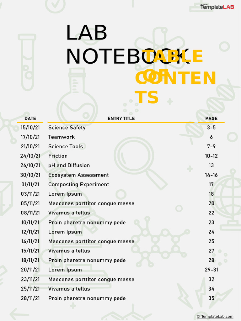 Lab Notebook Table of Contents Template - Google Slides | PowerPoint ...