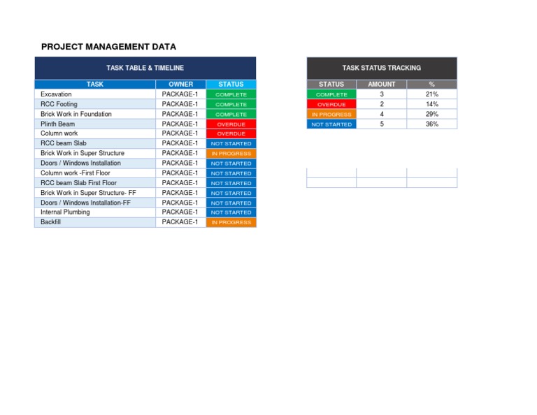 Project Management Data: Task Status Tracking Task Table & Timeline ...