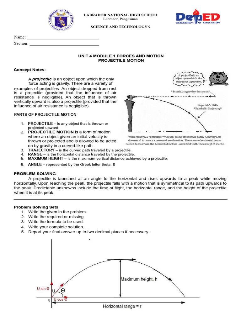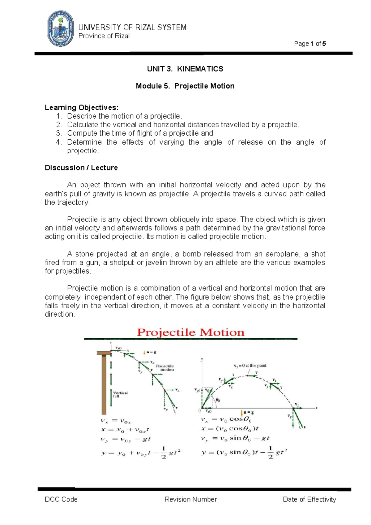 Module 5: Projectile Motion - Kinematics (Unit 3) - Studocu