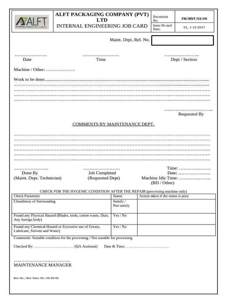 93 Free Job Card Template For Engineering Now with Free Job Card ...