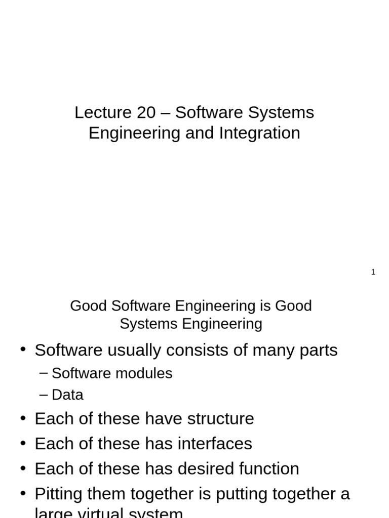 Lecture 20 - Software Systems Engineering and Integration | PDF ...