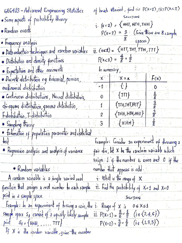 Advanced Engineering Statistics Note - Isaac's | PDF