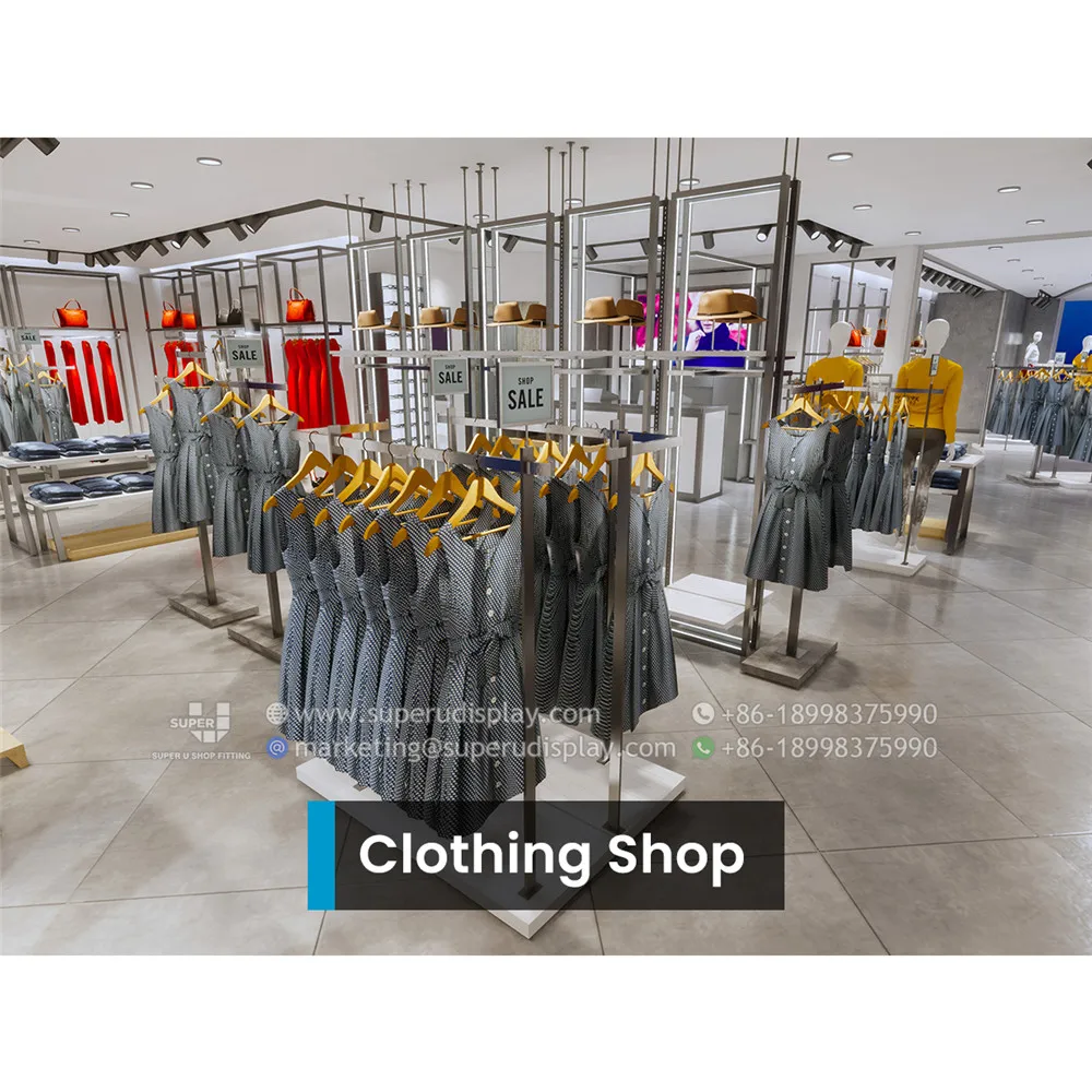 4K HDR Retail Store Interior Polished Chrome Sleek Shelves Warm ...