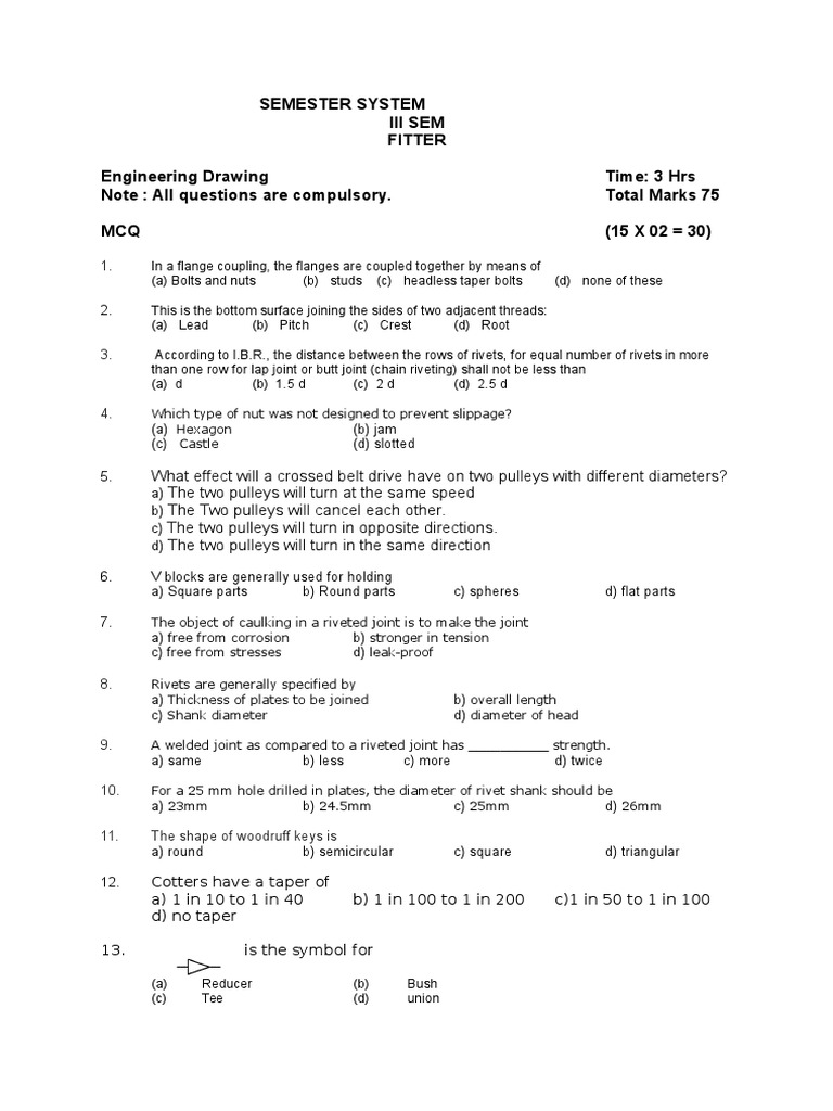 Engineering Drawing Exam: Fitter | PDF | Teaching Methods & Materials