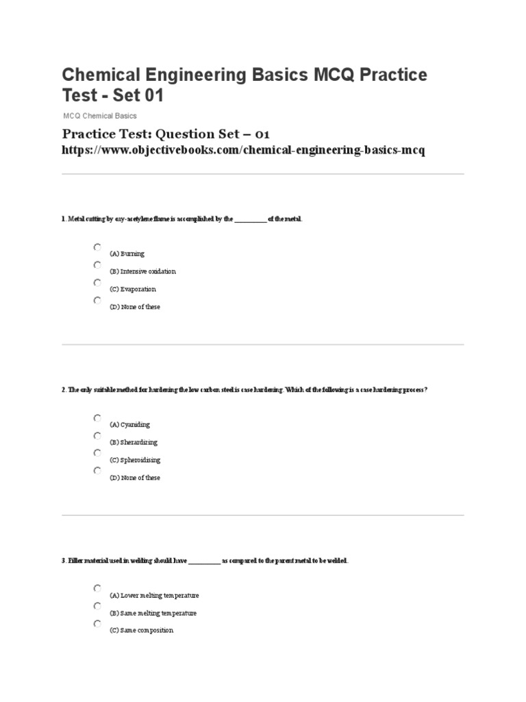 Chemical Engineering Basics MCQ Practice Test | PDF | Construction ...