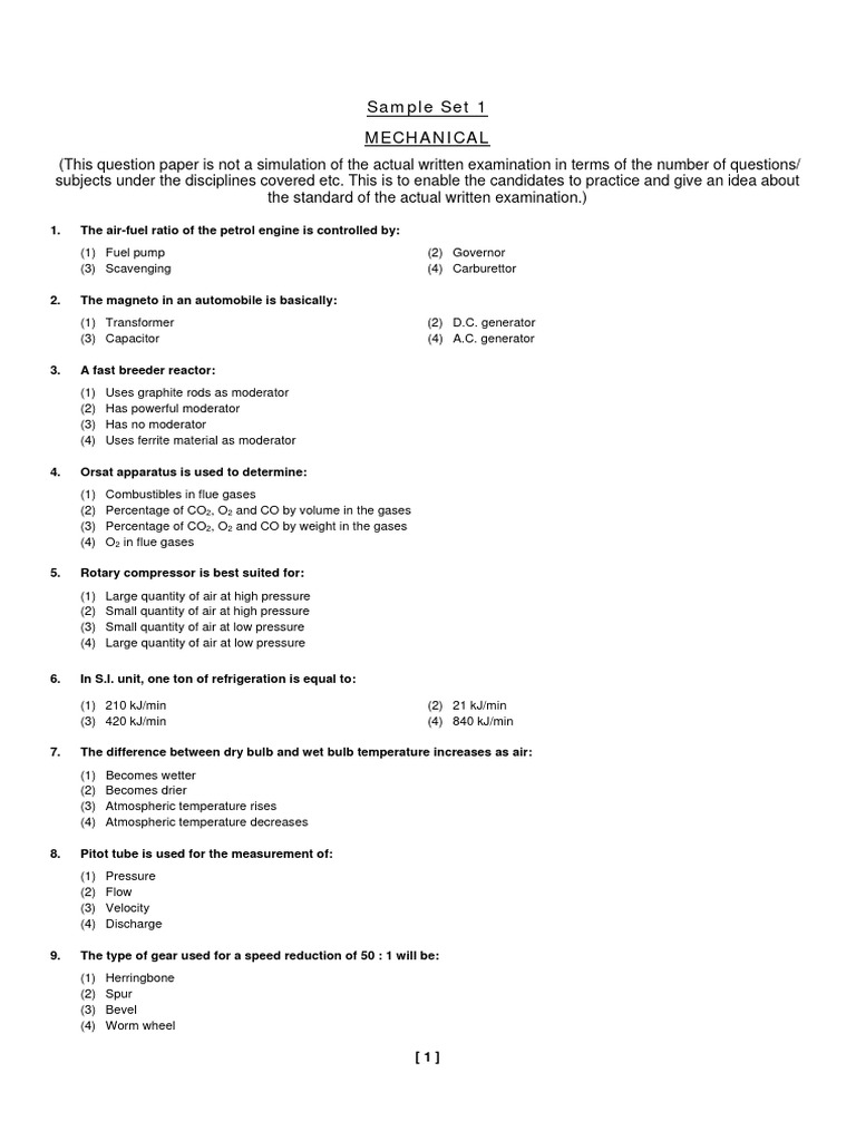 Mechanical Engineering Exam Practice Questions | PDF | Gases ...