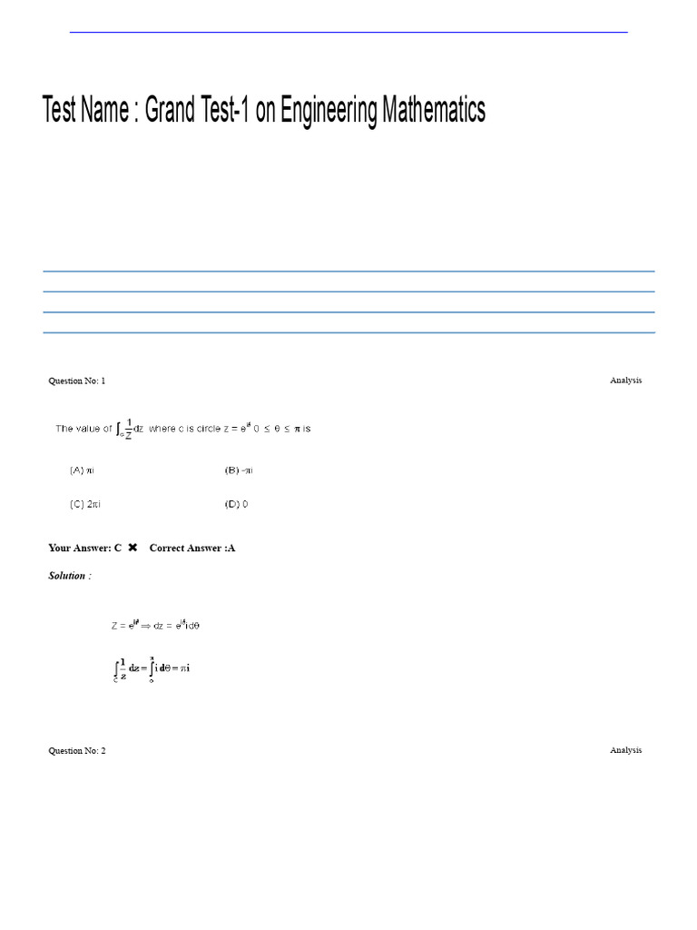 Engineering Mathematics Test Analysis | PDF