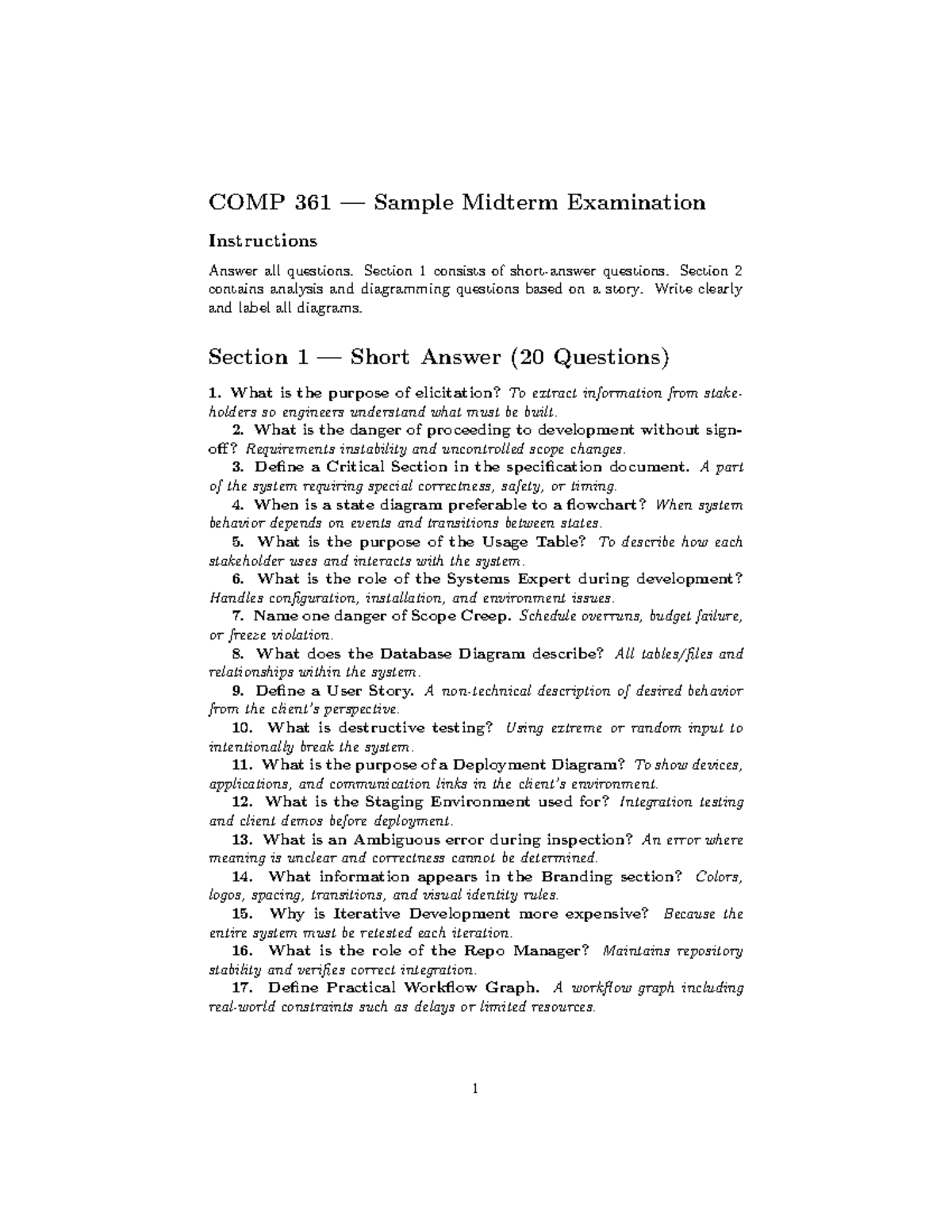 COMP 361 Sample Midterm Exam Practice Questions and Diagrams - Studocu
