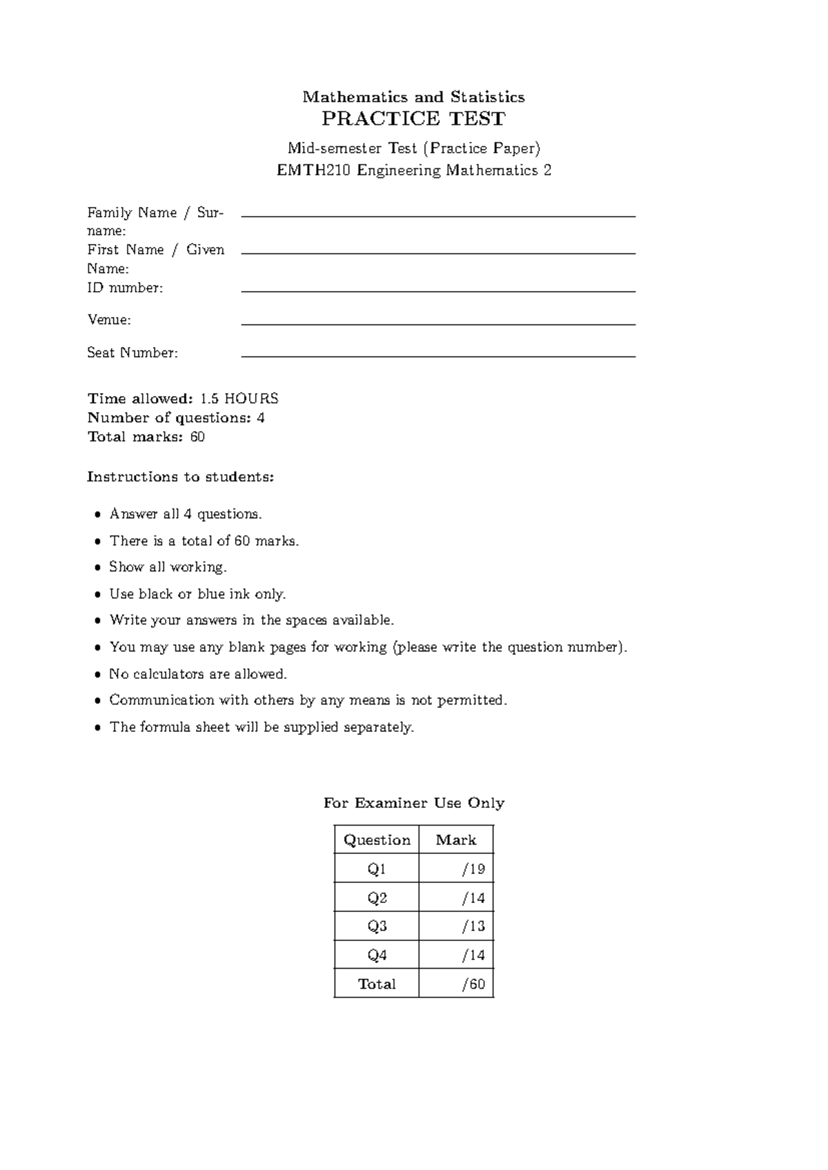 EMTH210 Engineering Mathematics 2 Practice Test Guide - Studocu