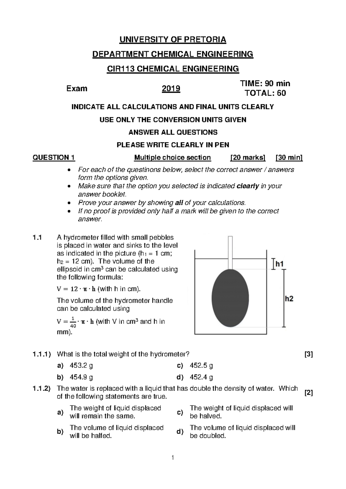 CIR113 Chemical Engineering Exam Practice 2019 - 90 min - Studocu