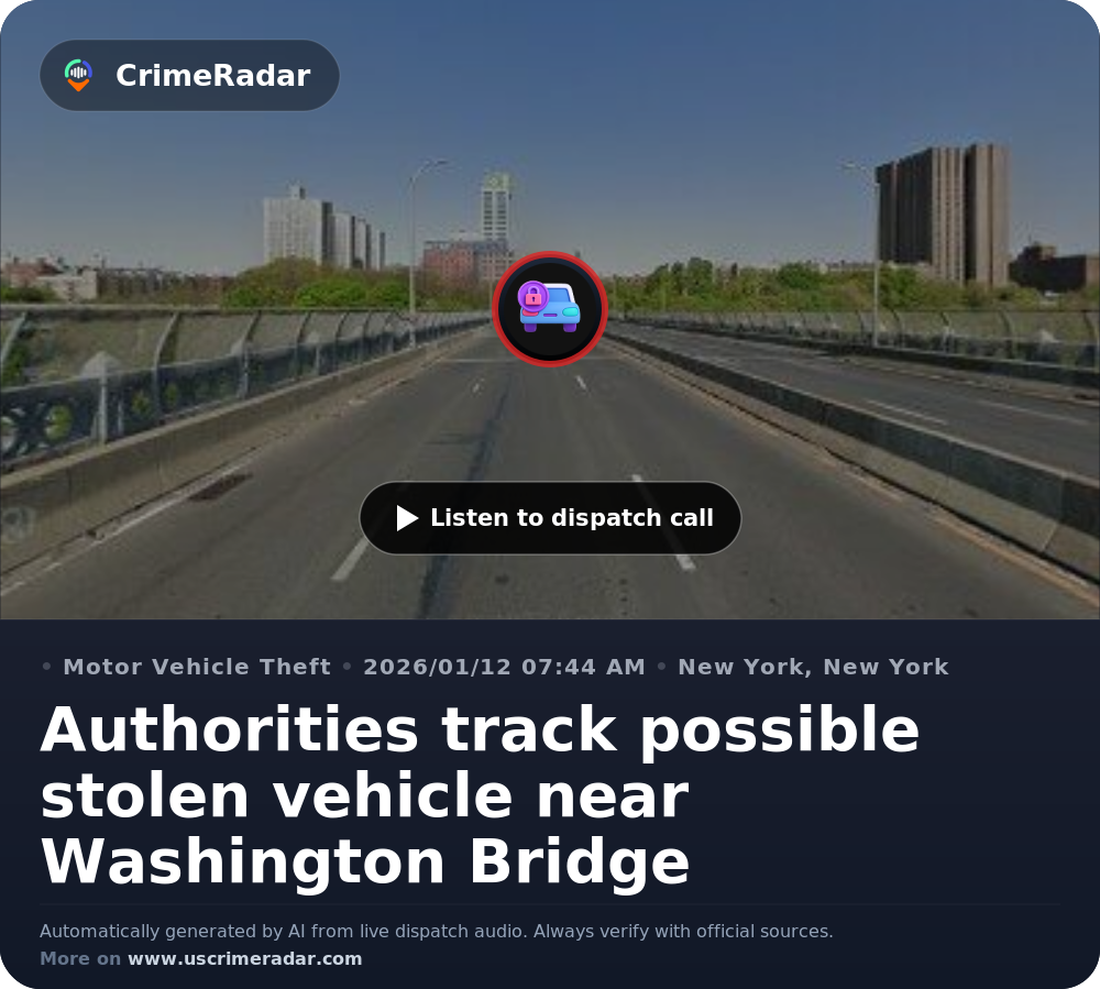 Authorities track possible stolen vehicle near Washington Bridge, New ...
