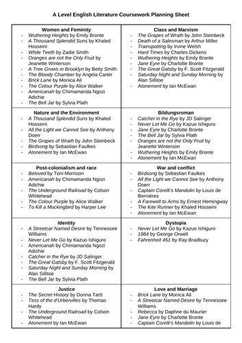 A Level English Literature - Topics and Resources
