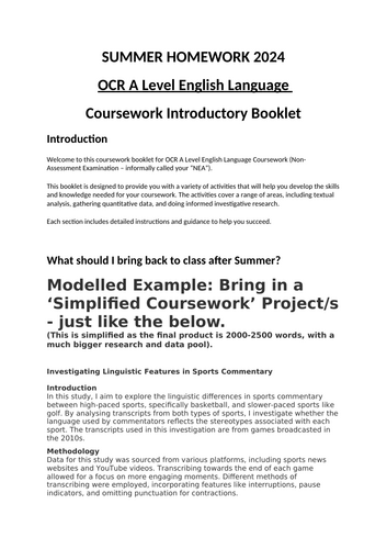 OCR A Level English Language Coursework NEA Summer Tasks | Teaching ...