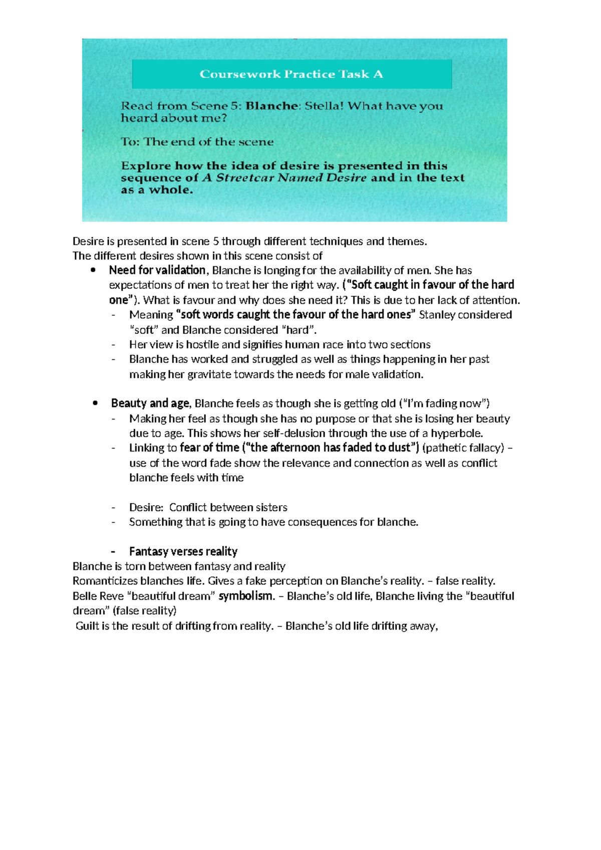Coursework Practice Task A - Desire is presented in scene 5 through ...