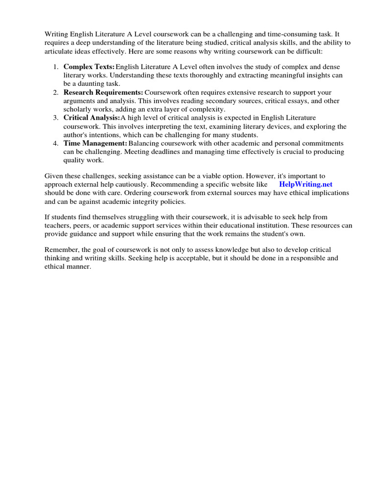 A Level English Coursework Examples. This resource | PDF