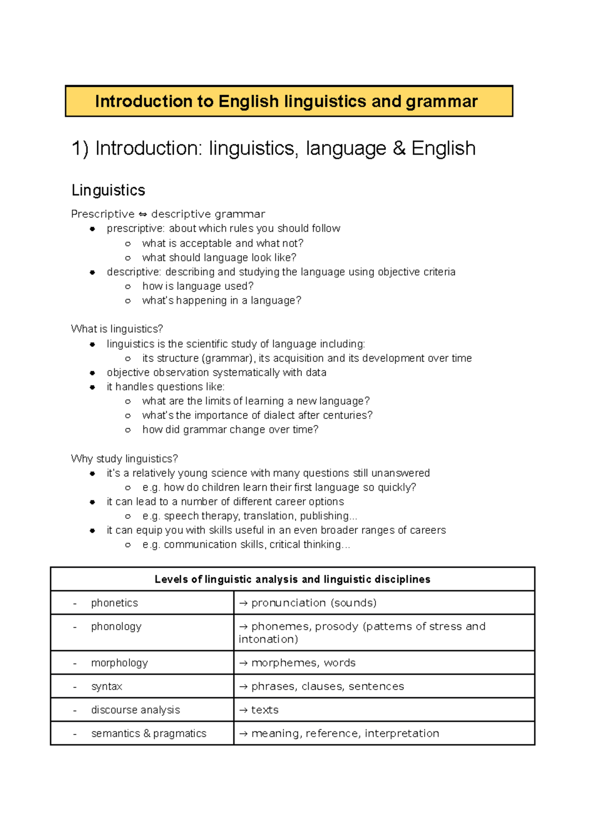 Resume Introduction English 1-3 - Introduction to English linguistics ...