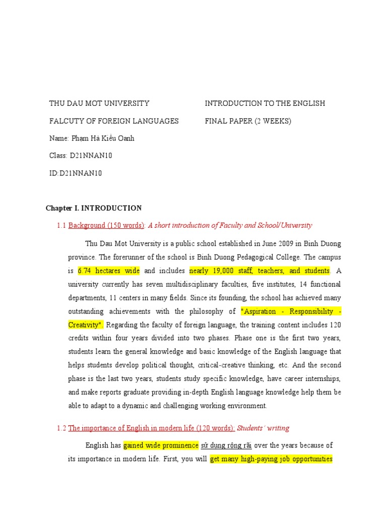 Introduction to English language-Final paper-Phạm Hà Kiều Oanh ...