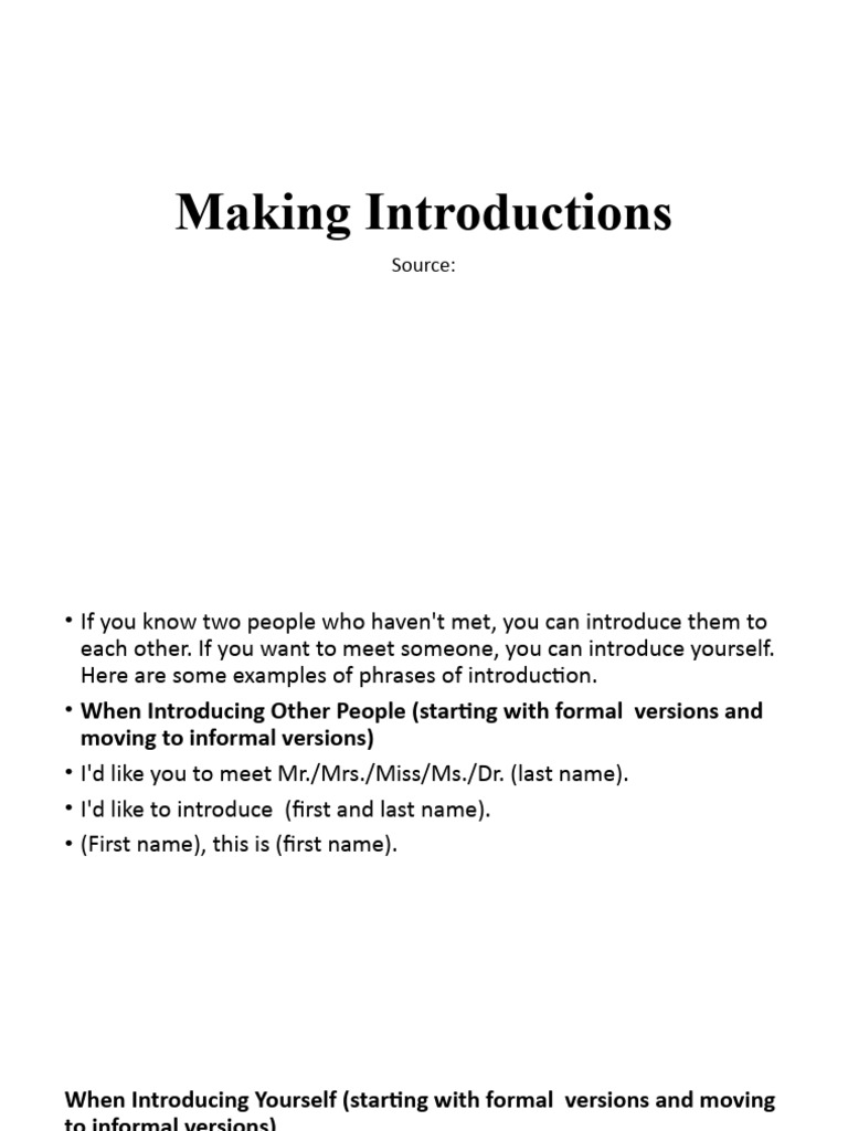 Common English Phrases For Introductions - 1 | PDF | Human ...