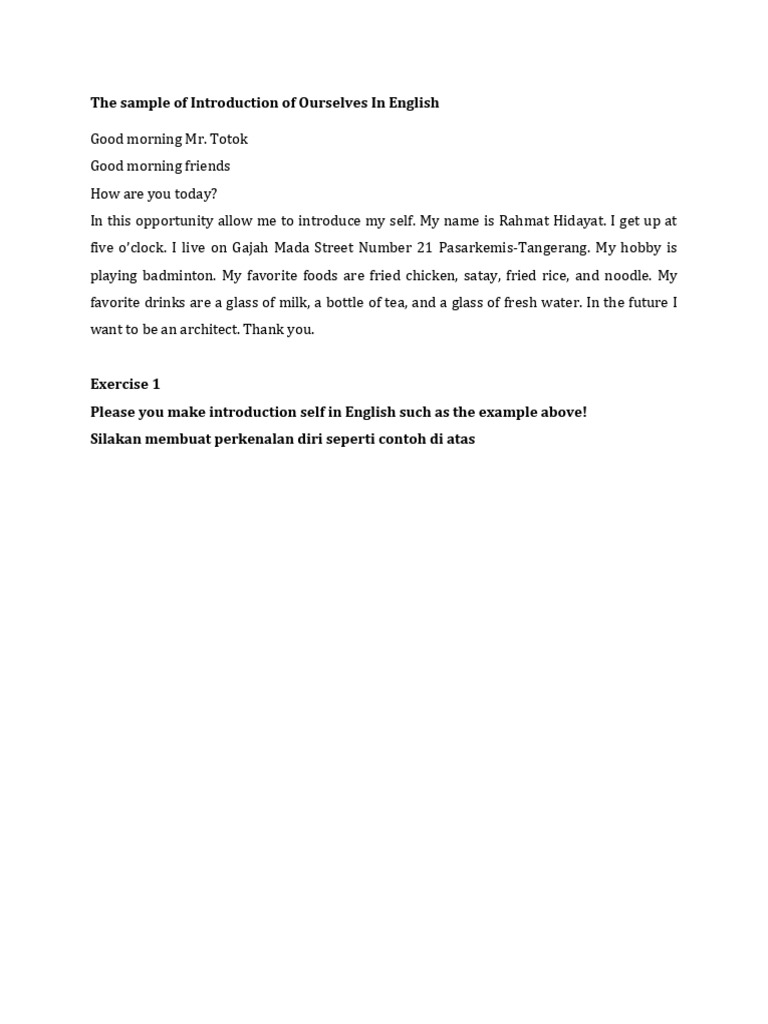 Self Introduction in English - MKDU UMBY 2020 | PDF