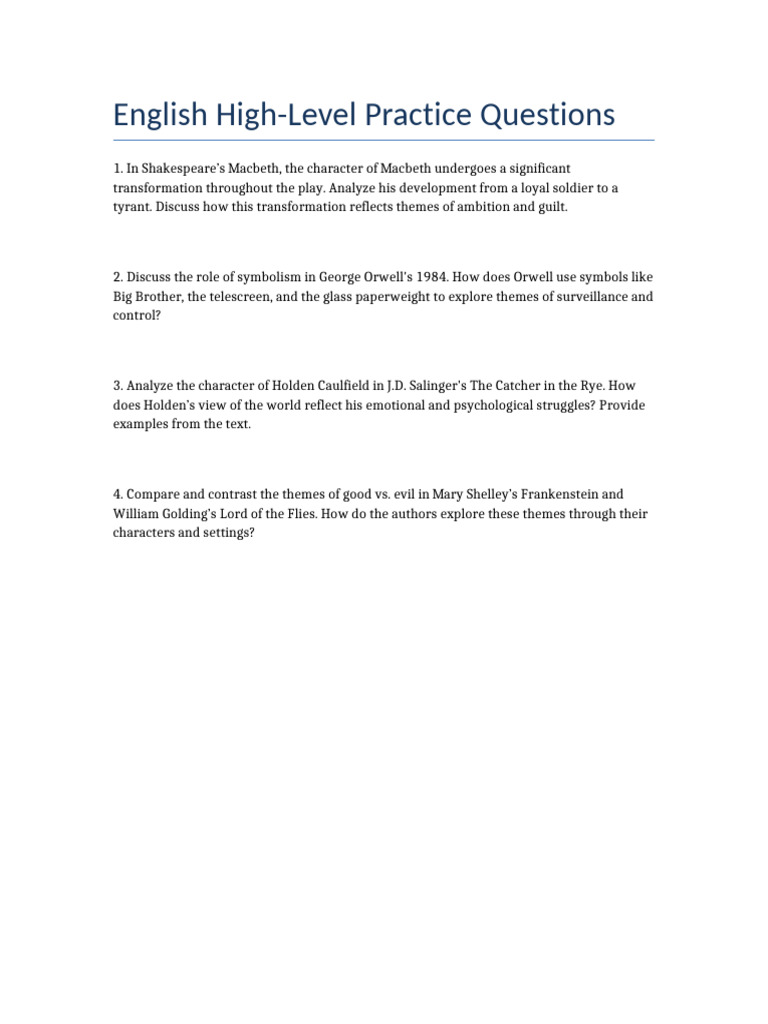 English Practice Questions And Answers - Free Printable