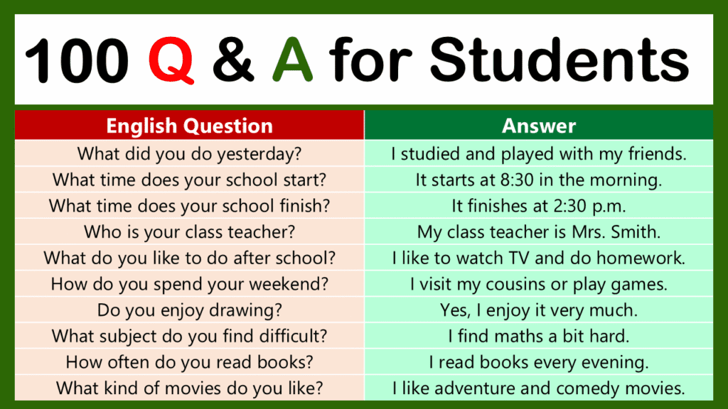 100 English Questions for School Students with Answers - Vocabzoo